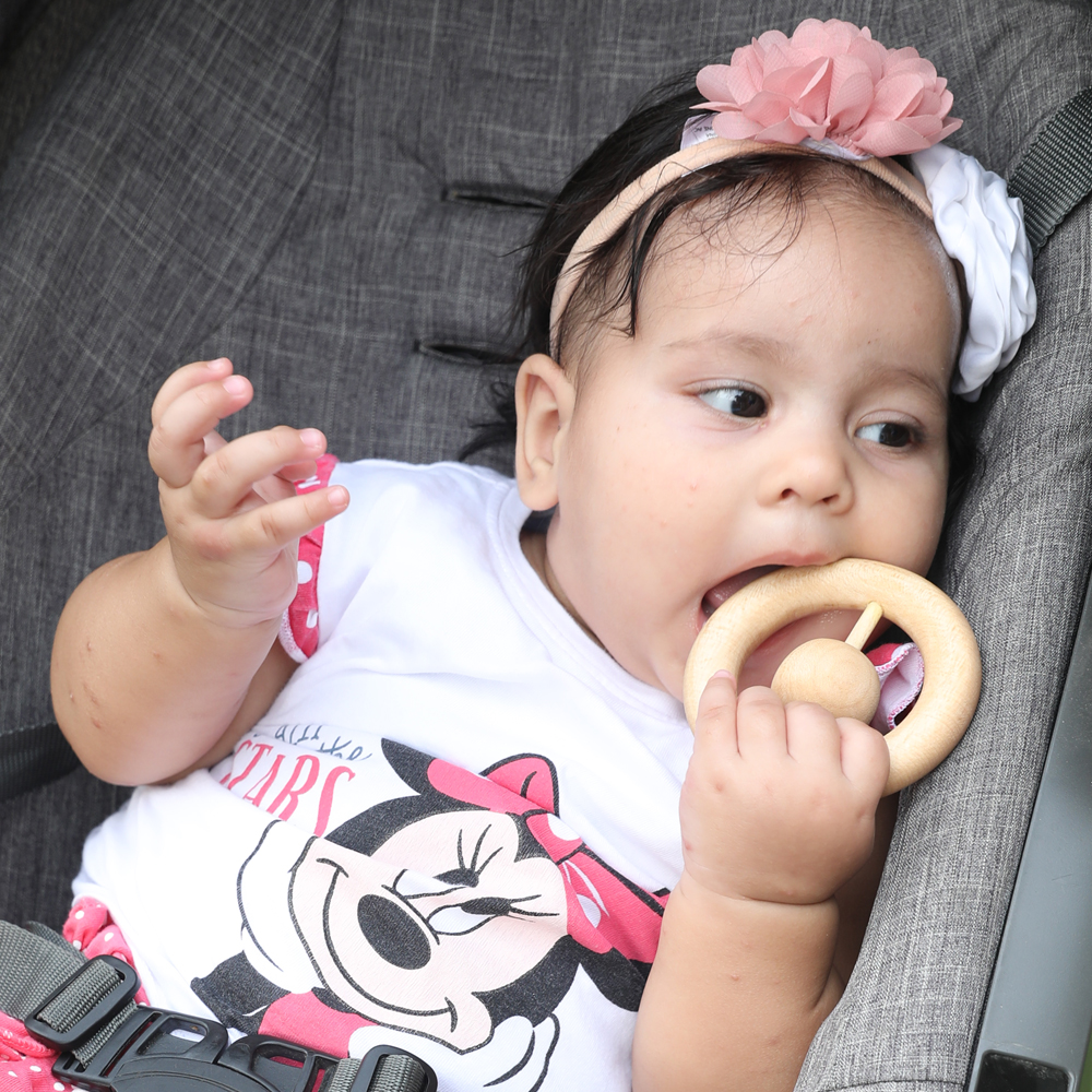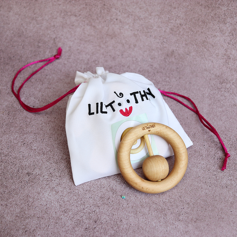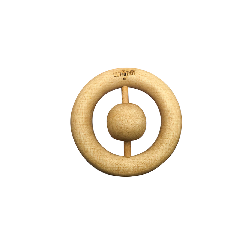A calm, circular rattle crafted from premium European Maplewood— splinter-free, naturally smooth, and safe for tiny hands to grasp. The rounded design is extremely soothing for teething babies, giving just the right amount of pressure on tender gums. Designed by a baby dentist and certified to international safety standards, this teether supports early motor development while easing teething discomfort in the most natural way. A beautiful first toy they’ll reach for every day.